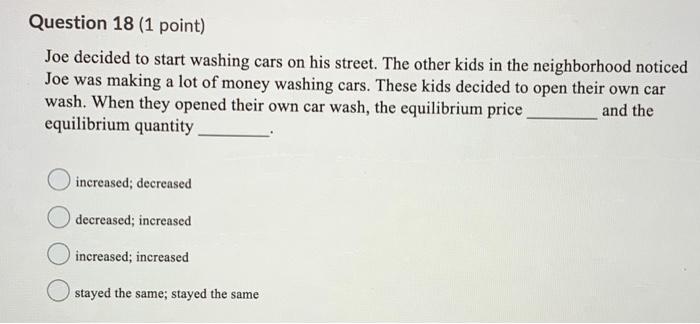 Solved Question 18 1 Point Joe Decided To Start Washing Chegg Com
